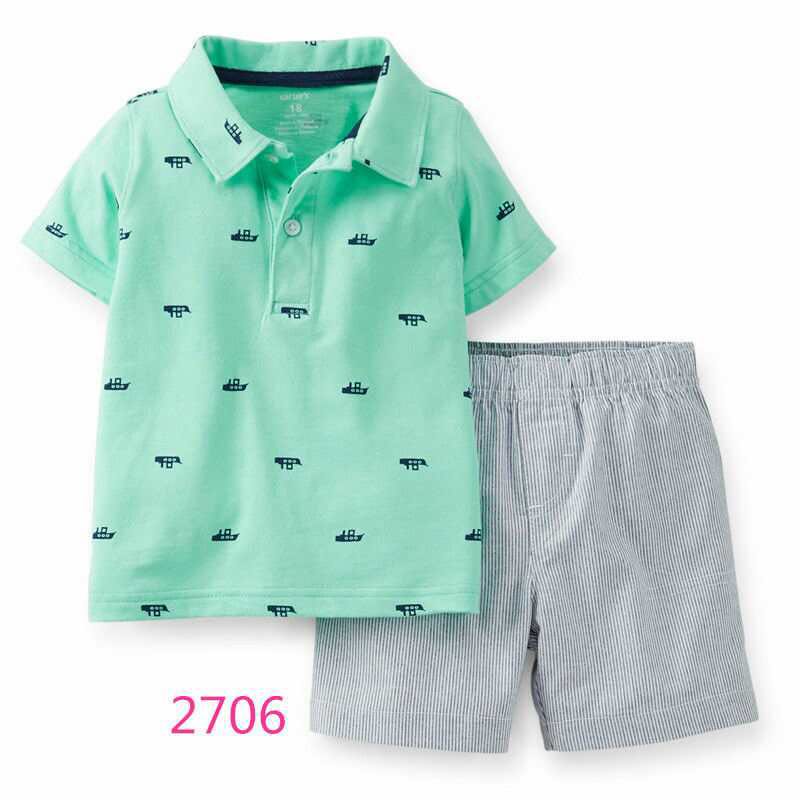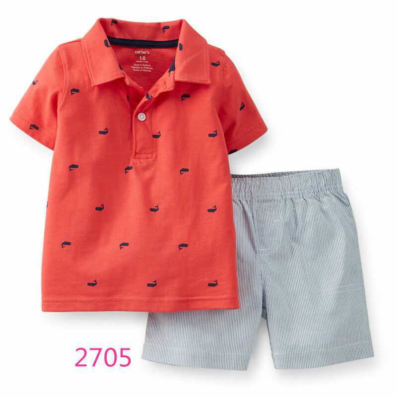 Summer two-piece sets, shorts \ leggings plus top (polo, T-shirt or bodysuit). Sizes 6,9,12,18,24. The minimum order is 5 packs. In a pack of 10 pieces, 2 pieces of each size.
