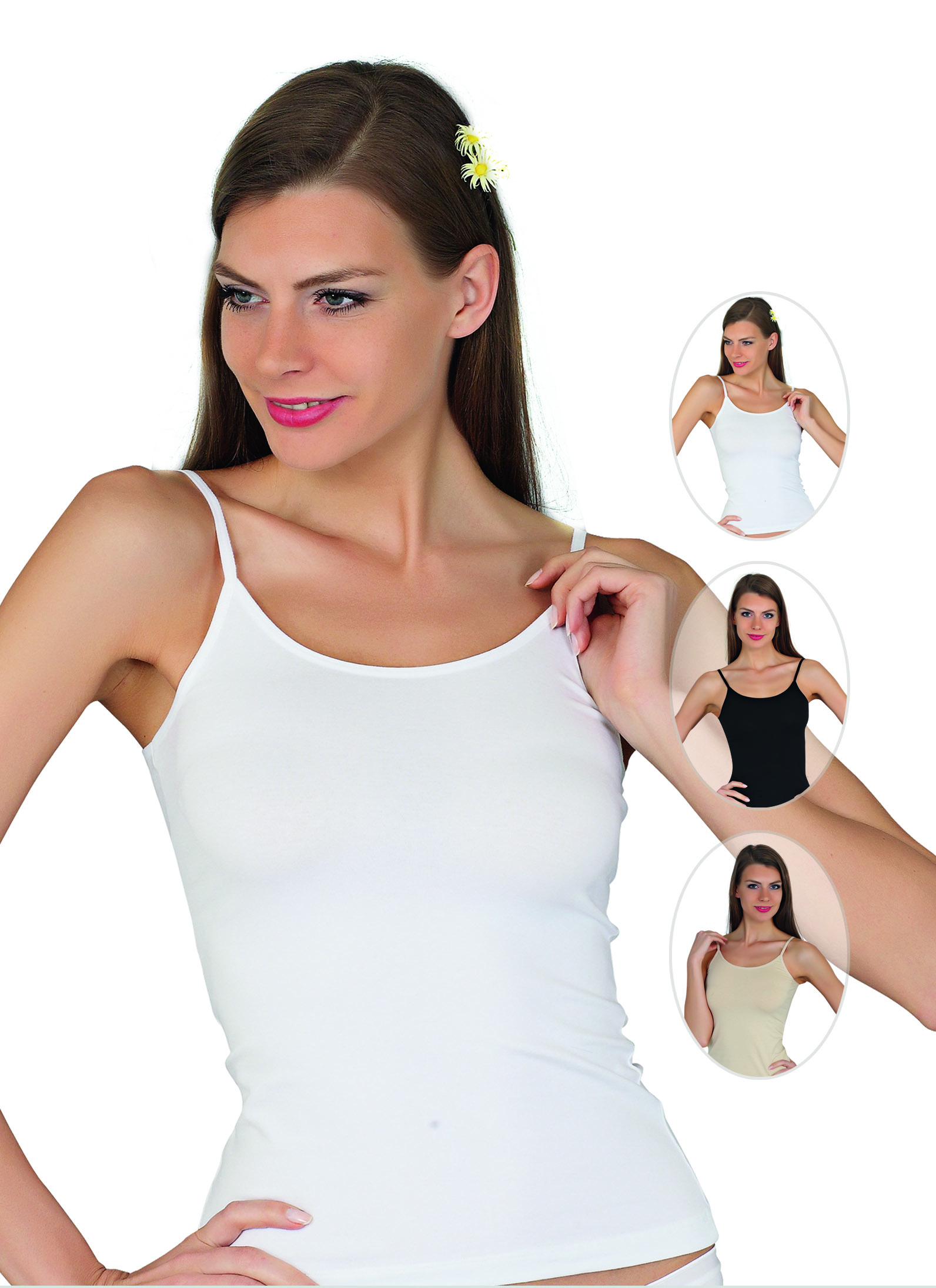Kadın t-shirt. Üretici Baykar. Pamuk% 95 ve Elastan% 5. Boyutlar: ML XL XXL XXXL. Renkler: beyaz, siyah ve bej.