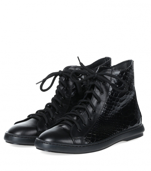 Черные кеды на молнии и шнурках из натуральной кожи под питона, подкладка из натуральной кожи, резиновая подошва