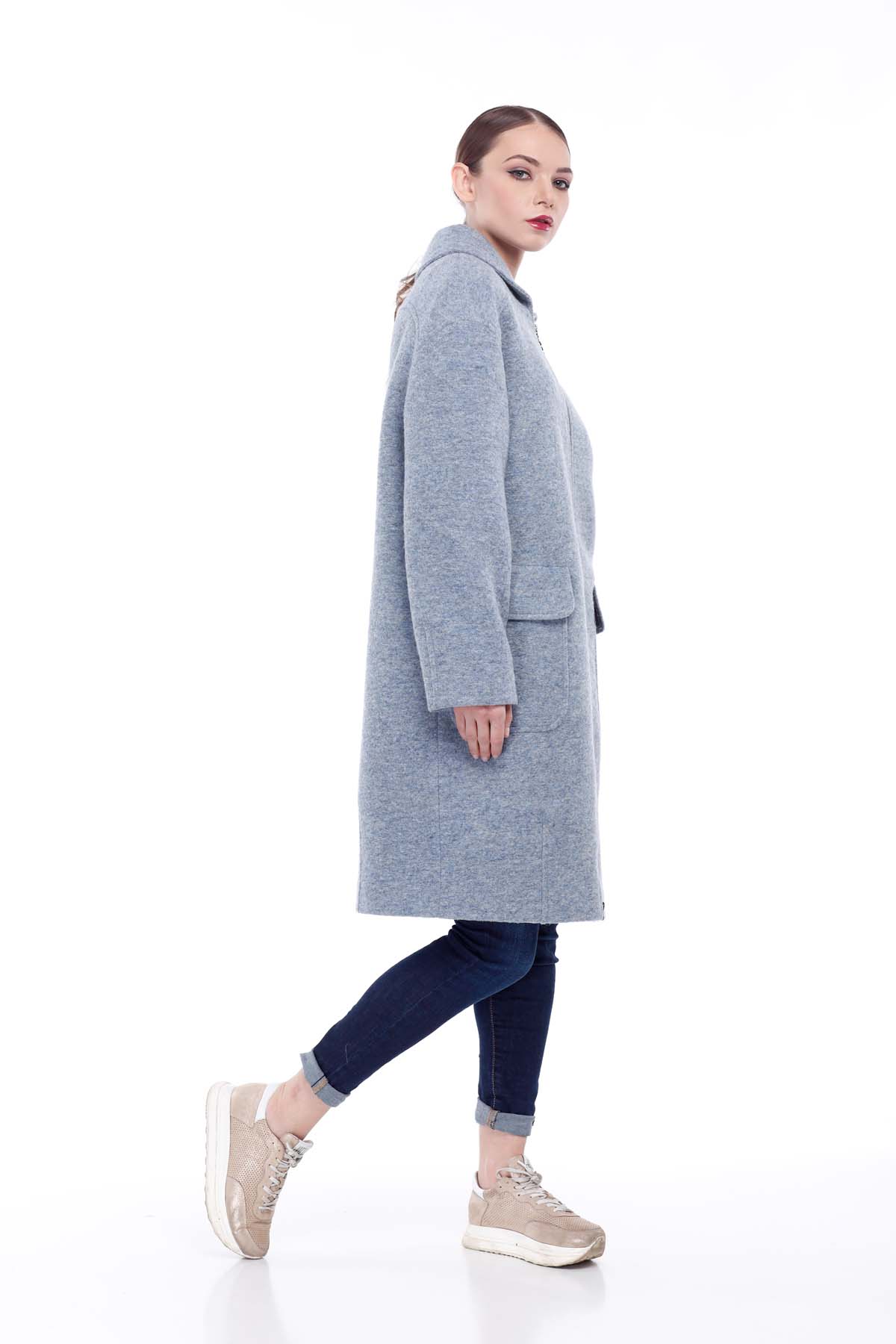Oval siluet, büyük hacim; kesim kollu - uzatılmış omuz çizgisine sahip gömlek; raflarda ve arkada flörtlerle; belin hemen altındaki raflardaki enine kabartmalar; rafların rölyeflerine sokulmuş yama cepleri. Fermuar, açık fermuar. Yaka - boynun arkasında kalan yumuşak bir formun geniş bir rafı yavaşça dönebilir. Rafların dibinde, kolların arka ve alt kısmında, örgüler dikilir ve oval bir siluet oluşturur. Allegra ceket kolayca bir kadın gardırobunun incisi olabilir. Doğal İtalyan yünden yapılır, ısıyı mükemmel bir şekilde tutar ve aynı anda çeşitli stilleri birleştirir. Bu model öncelikle pratiklik ve giyilebilirliği tercih edenler için tasarlanmıştır. Renkler: mavi kot pantolon, zümrüt, mocha, açık gri, açık gri melanj, gri mavi, lacivert. Ürün uzunluğu: 100 cm Boyut aralığı: 42-48