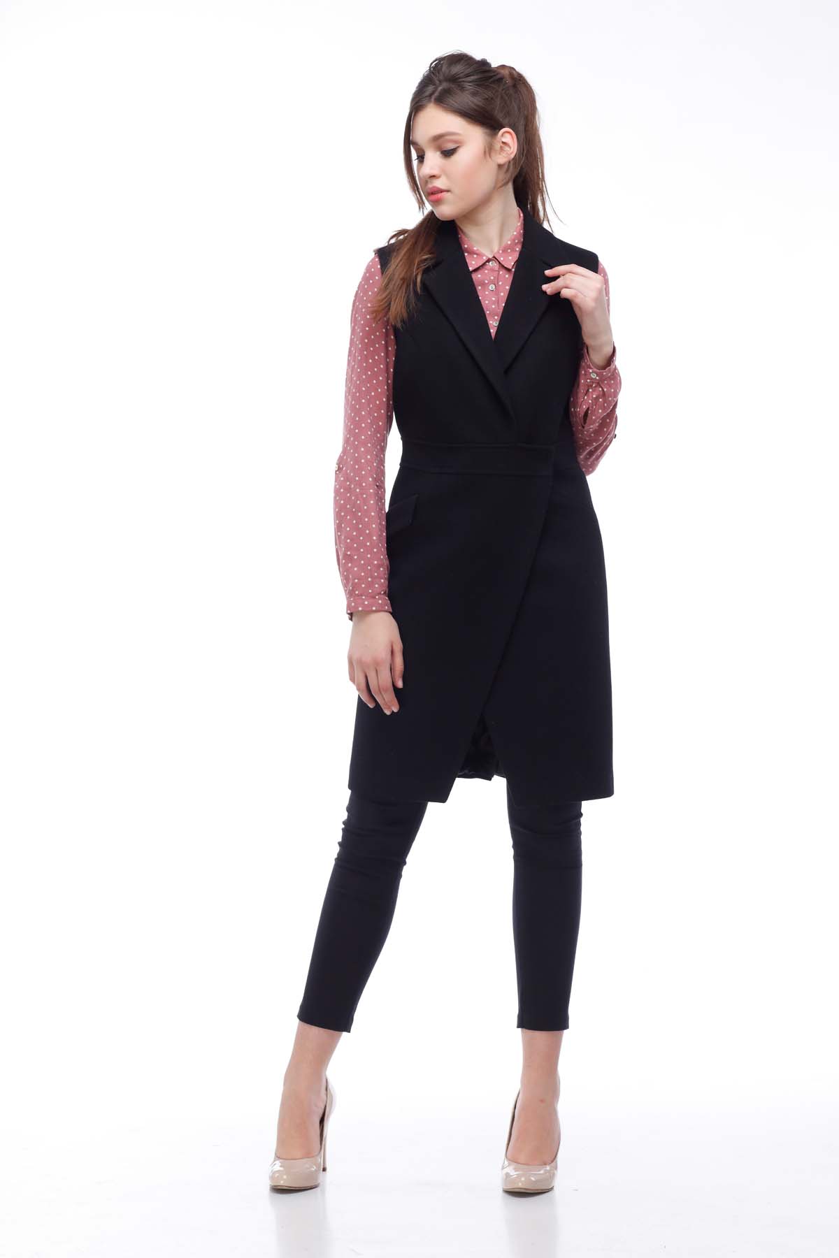 Zarif ve sofistike bir Anabel yeleği İtalyan yapımı melton paltolardan yapılmıştır ve klasik siyah ve mavi renkte sunulmaktadır. Model çok yönlülüğe ve pratikliğe sahiptir, bir iş kadını aristokrat tadı vurgular ve yarı takılmış bir siluet sayesinde figürünü daha ince hale getirir. Boyut aralığı: 44-52