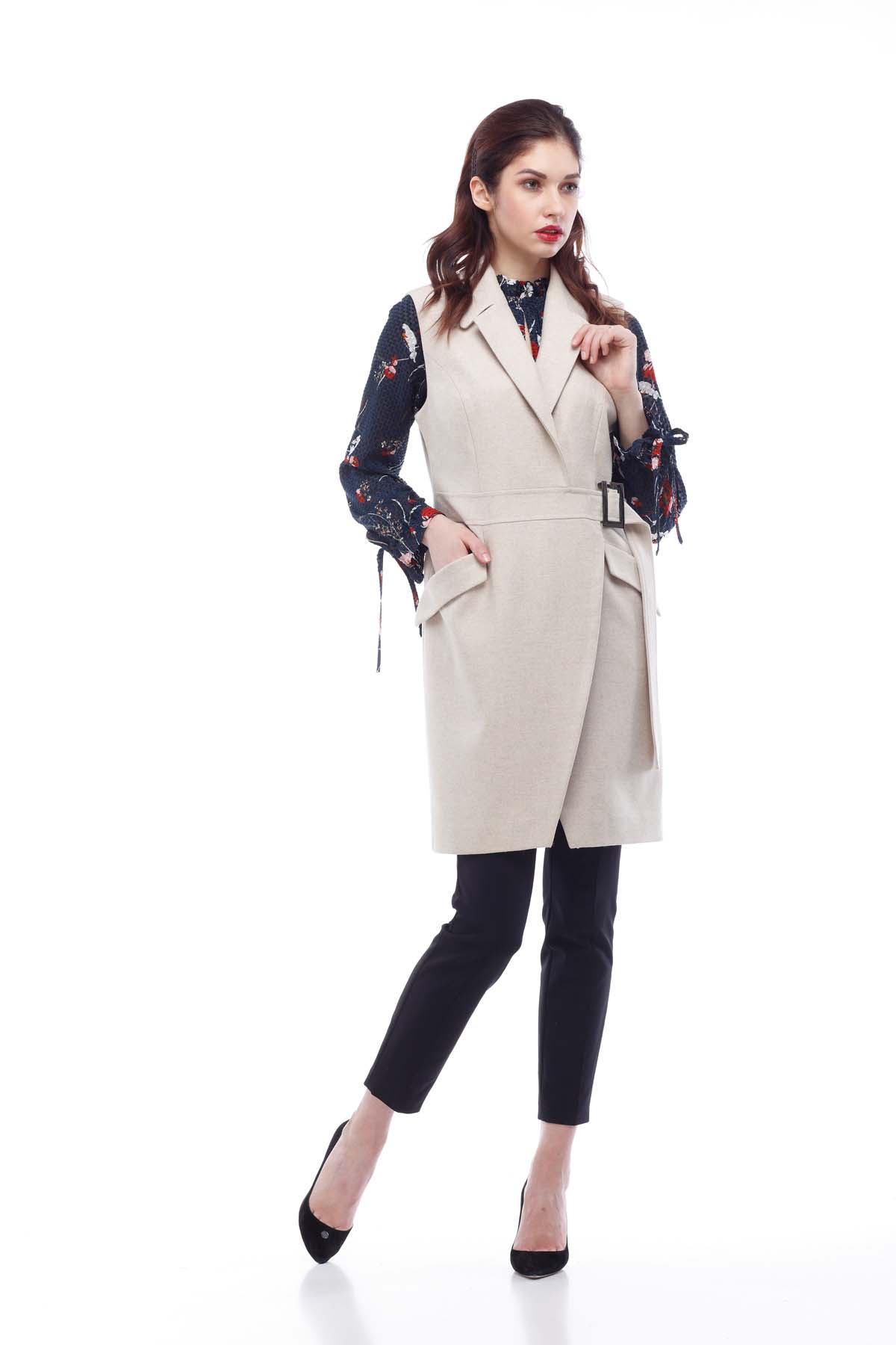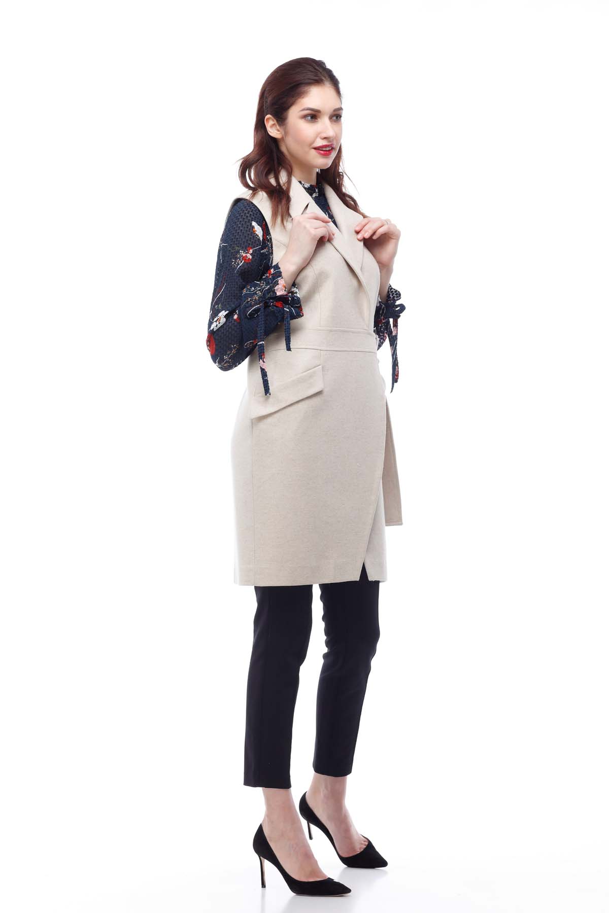 Zarif ve sofistike Anabel yelek, bej ve garnet gölgesinde sunulan İtalyan yapımı ceket kumaşından yapılmıştır. Model çok yönlülüğe ve pratikliğe sahiptir, bir iş kadını aristokrat tadı vurgular ve yarı takılmış bir siluet sayesinde figürünü daha ince hale getirir. Renk: bej Boyut aralığı: 40-52