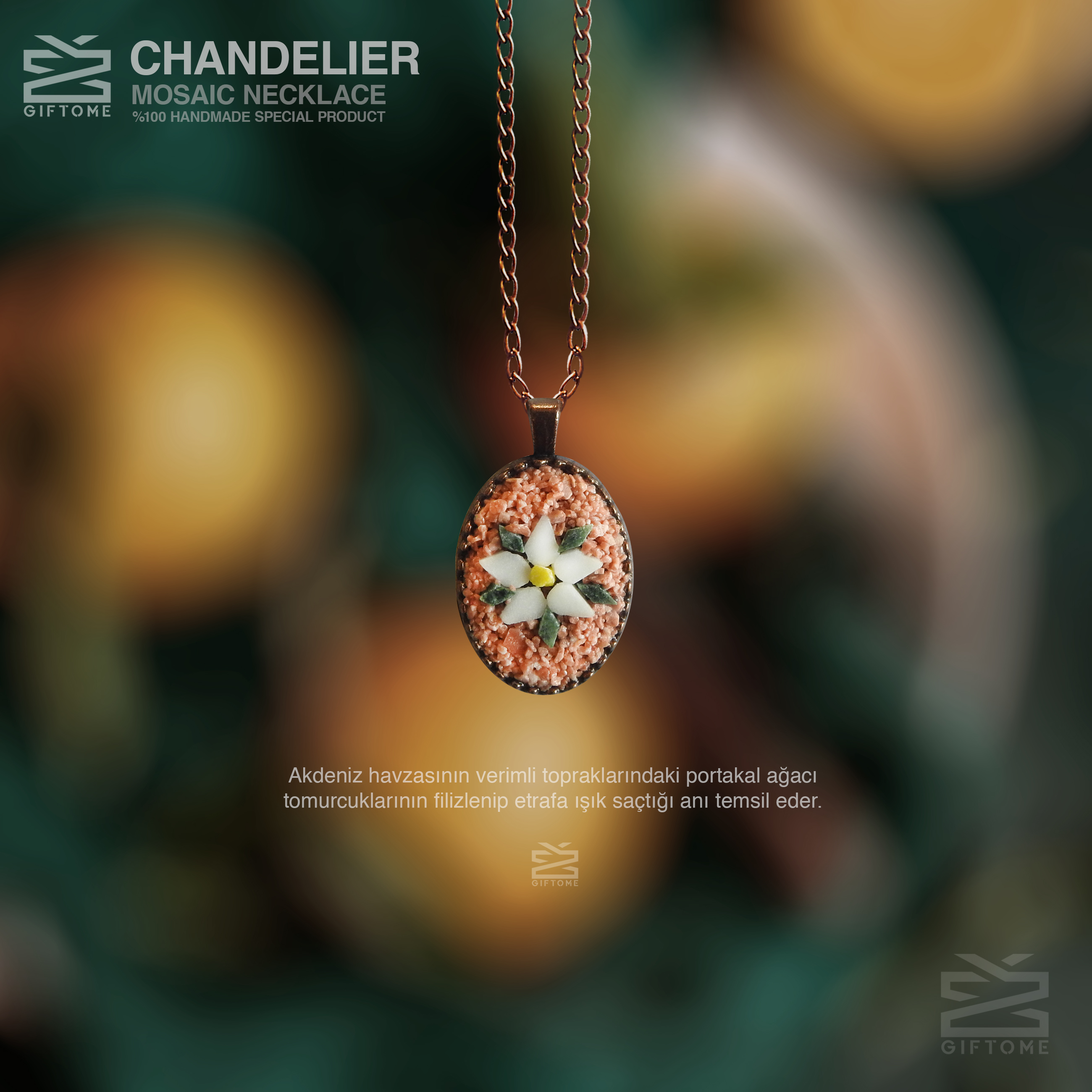 Giftome El Yapımı Doğal Taş Mozaik Kolye