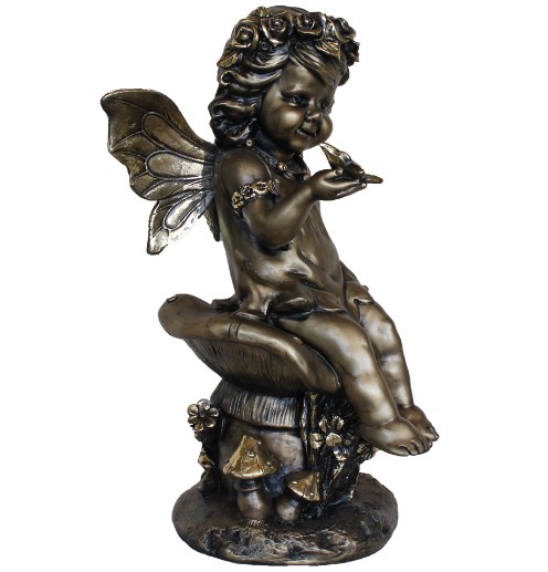Bir kelebek ile bir mantar üzerinde heykelcik kız