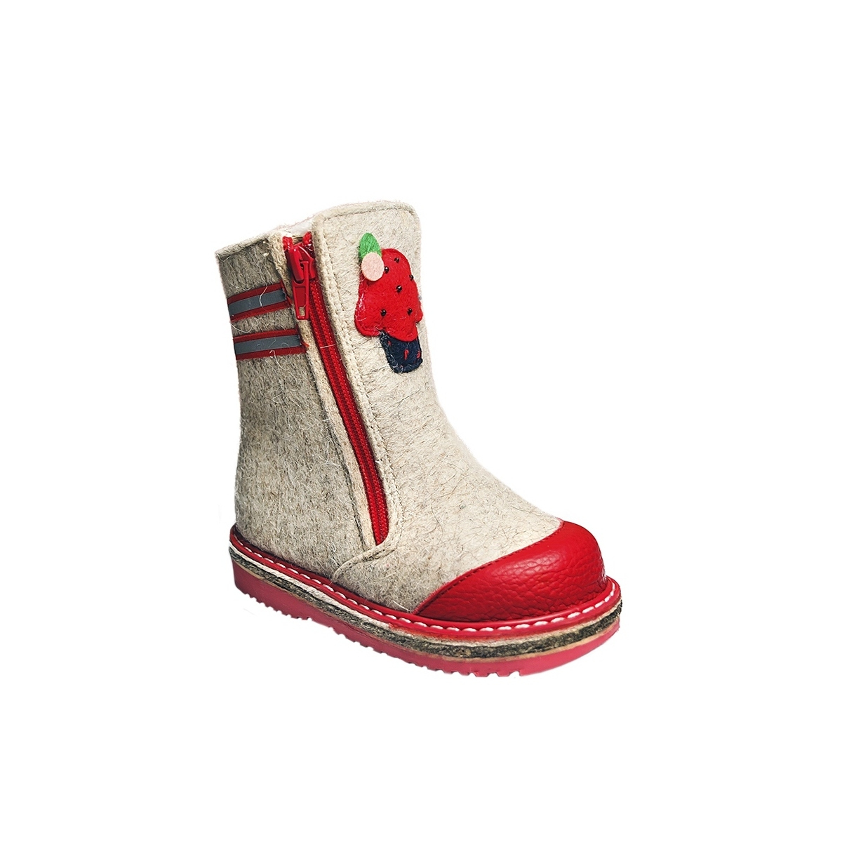Upper material - felt Model - 236-096 Type of footwear - high boots Size - 100% cotton Color - 100% cotton Lining material - fur-wool Trade mark - FOMA Model - 100% cotton Size - 23 -26 (4 pairs) Color - gray-red