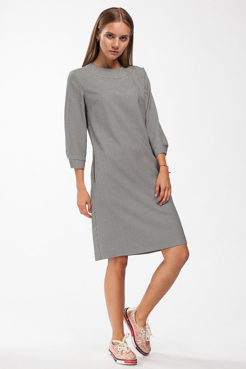 Elbise kadınlar 208/01. Kapatma tipi: fermuar Yaka: yarım daire Kol uzunluğu: dörtte üçü Siluet: ücretsiz Desen: gri bir arka plan üzerinde kaz ayağı Cepler tipi: cepli Dekoratif elemanlar: ceplerde siyah borular Tasarım öğeleri: kesilmemiş Ana kumaşın yapısı:% 32 viskon,% 65 pe, 3% elastan Astar bileşimi: astarsız Elbise uzunluğu: midi Eşyaların bakımı: 30 ° C'de yıkayın, 110 ° C'ye kadar demir sıcaklığında ütüleme, ağartmayın, tambur kuruması yasaktır