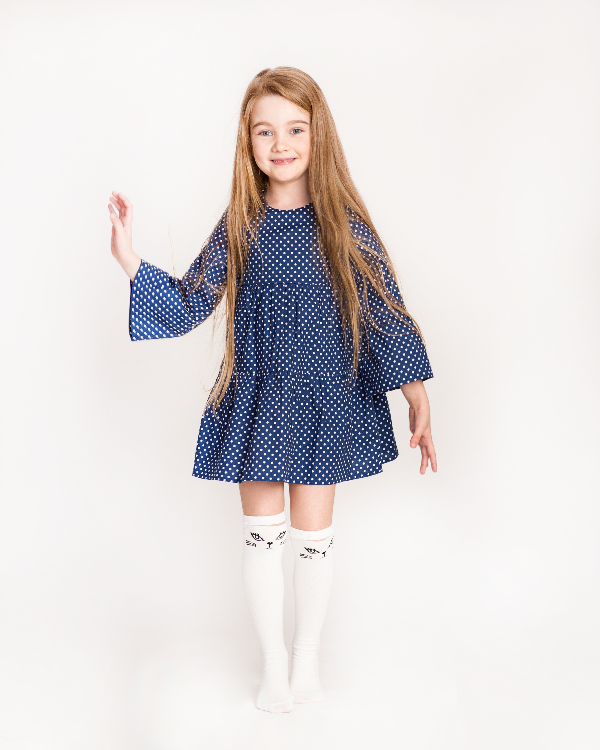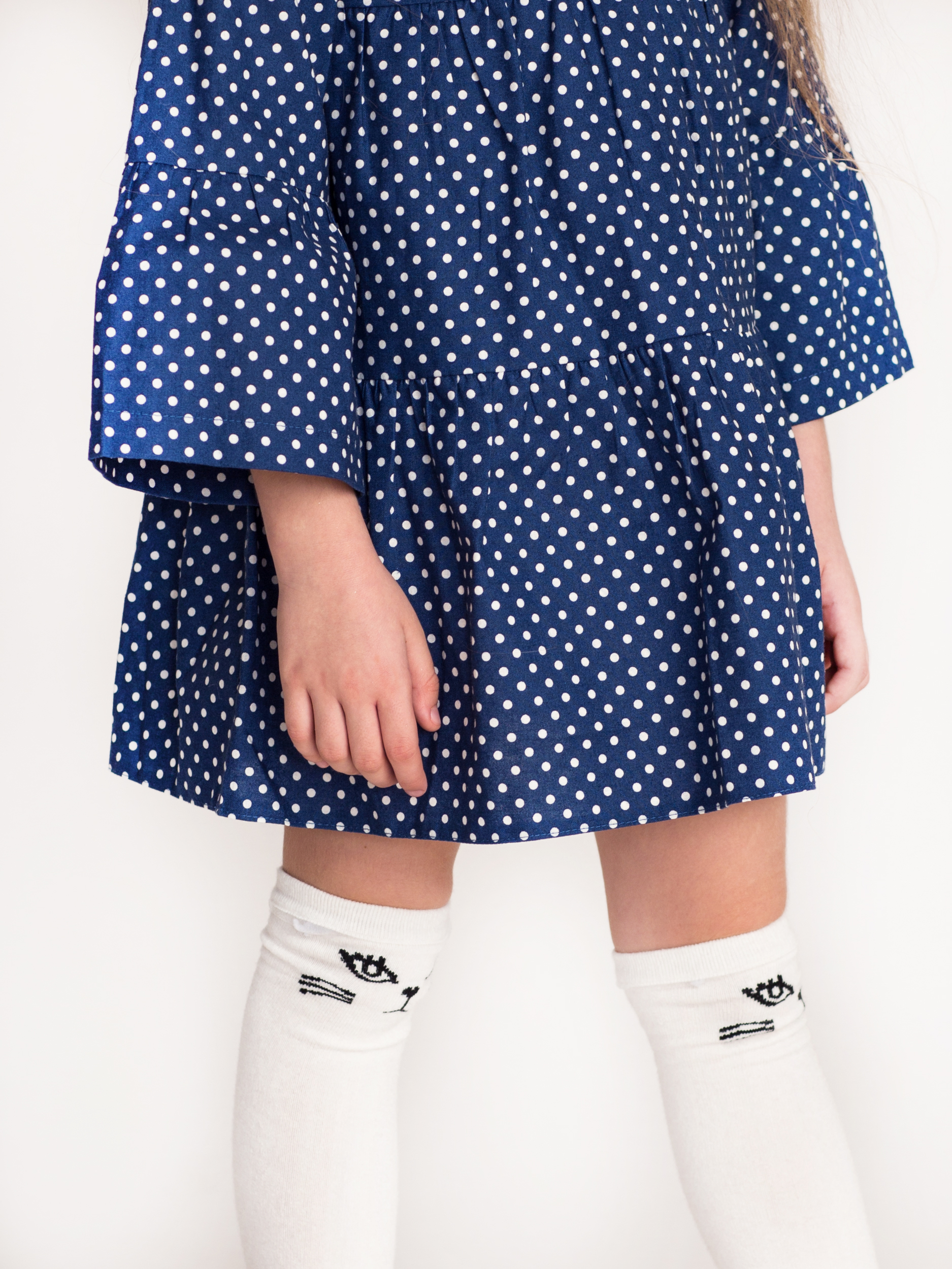 Платьице из оксфордского хлопка. Классический горошек подчеркивает нежность, а синий цвет придаёт платьицу ощущение тепла и уюта