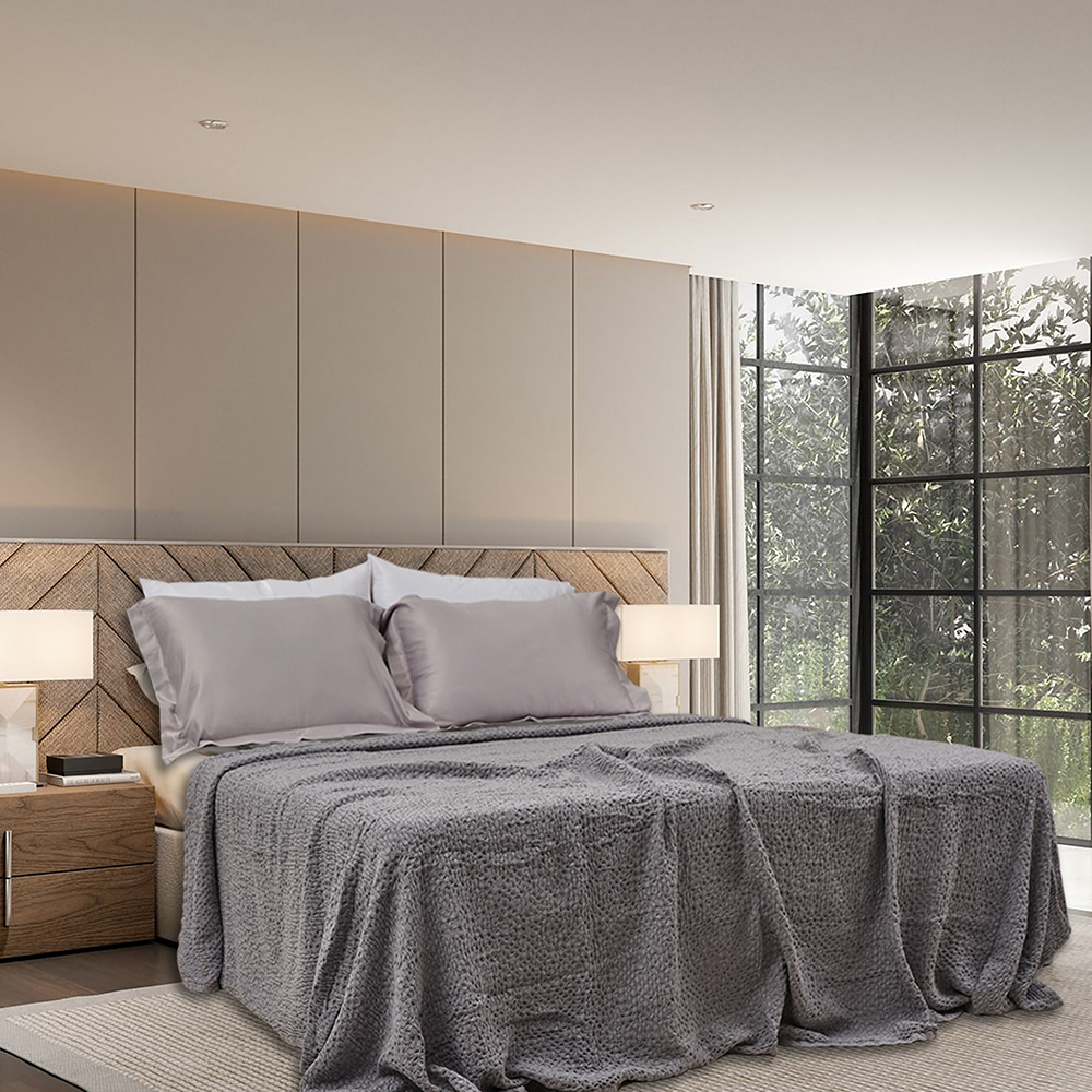 Waffle Organik Pamuk Örme Battaniye Koyu Gri