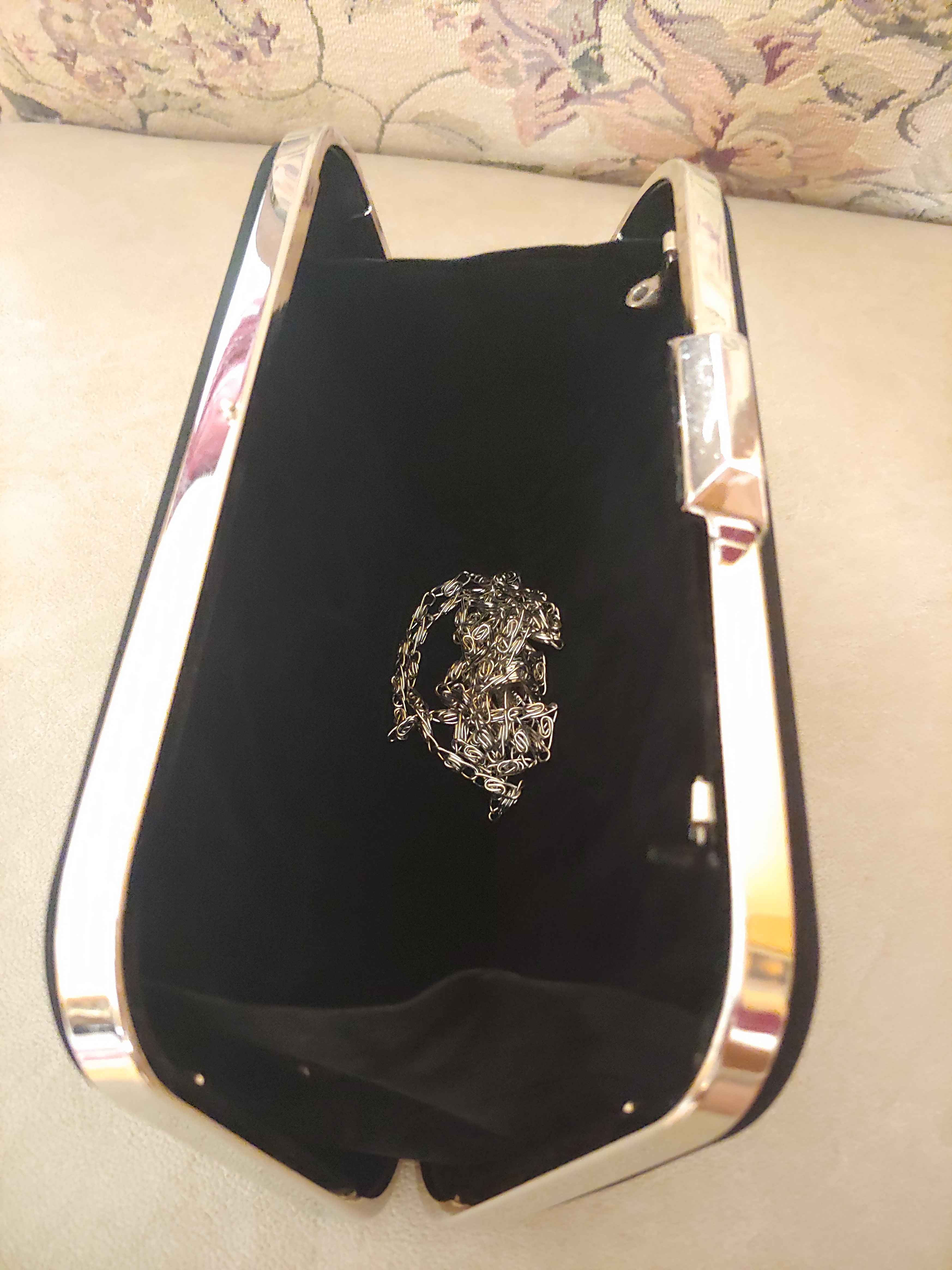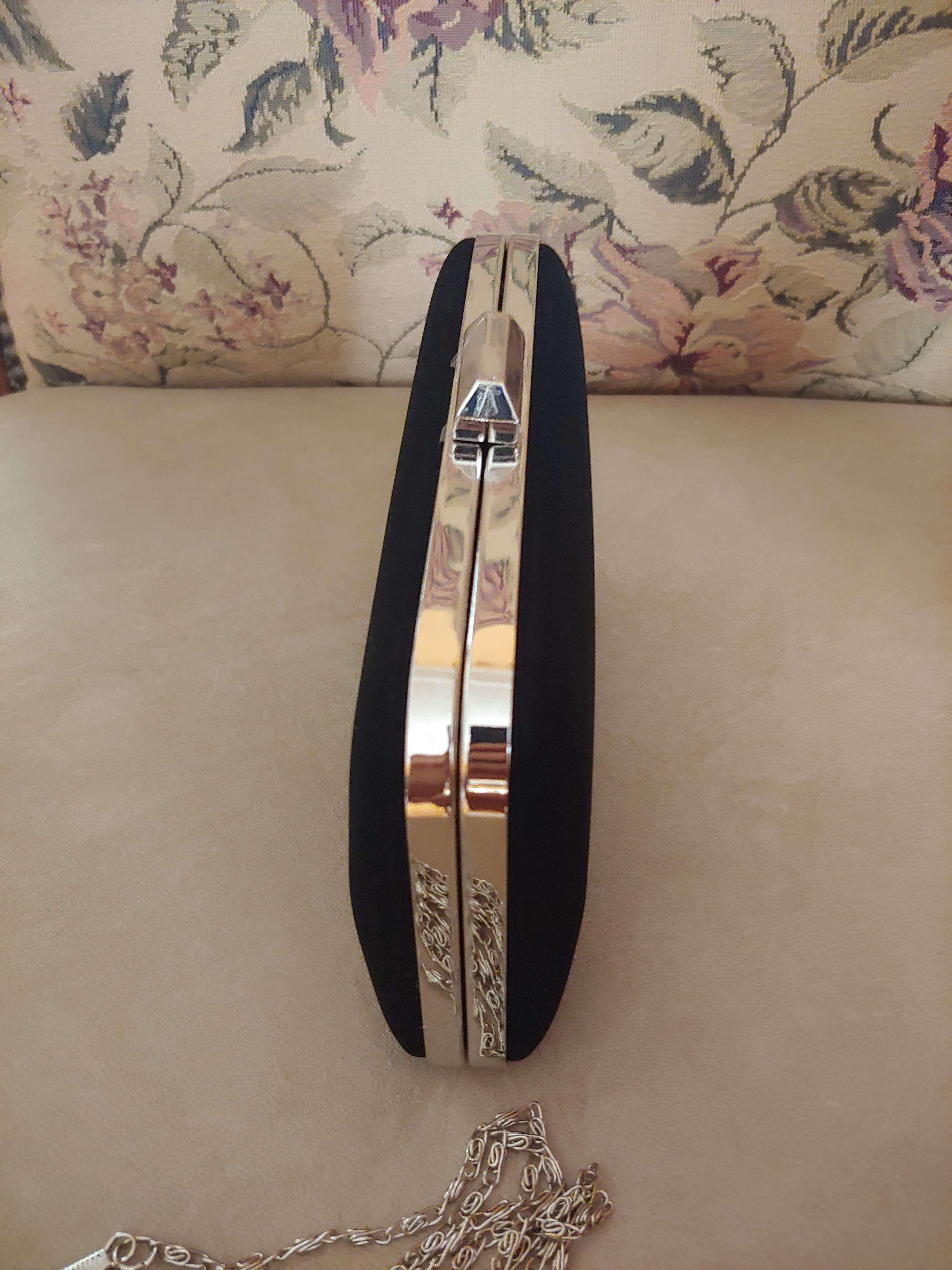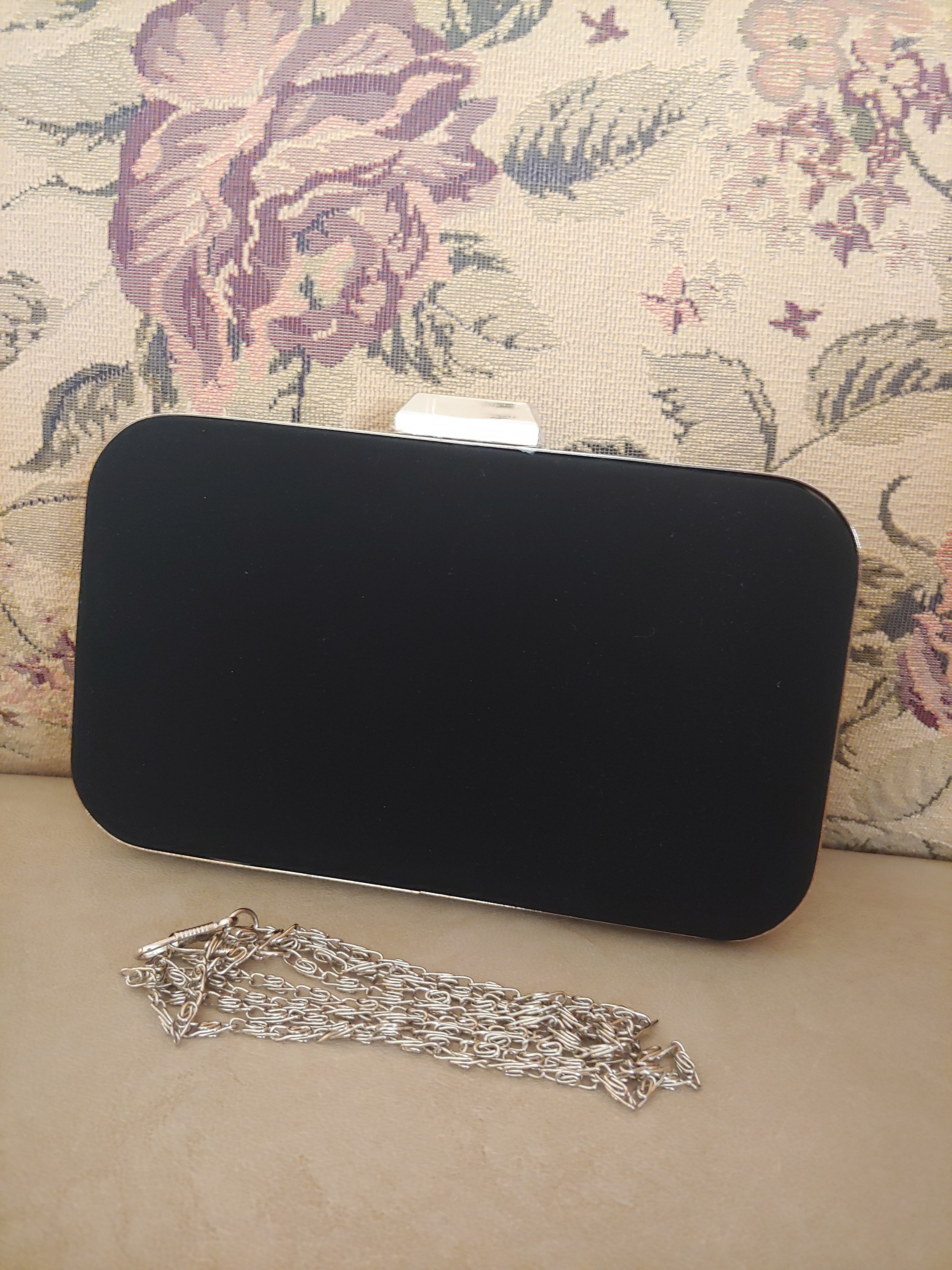 Metal Kasalı Abiye El Çantası- Siyah Nubuk
