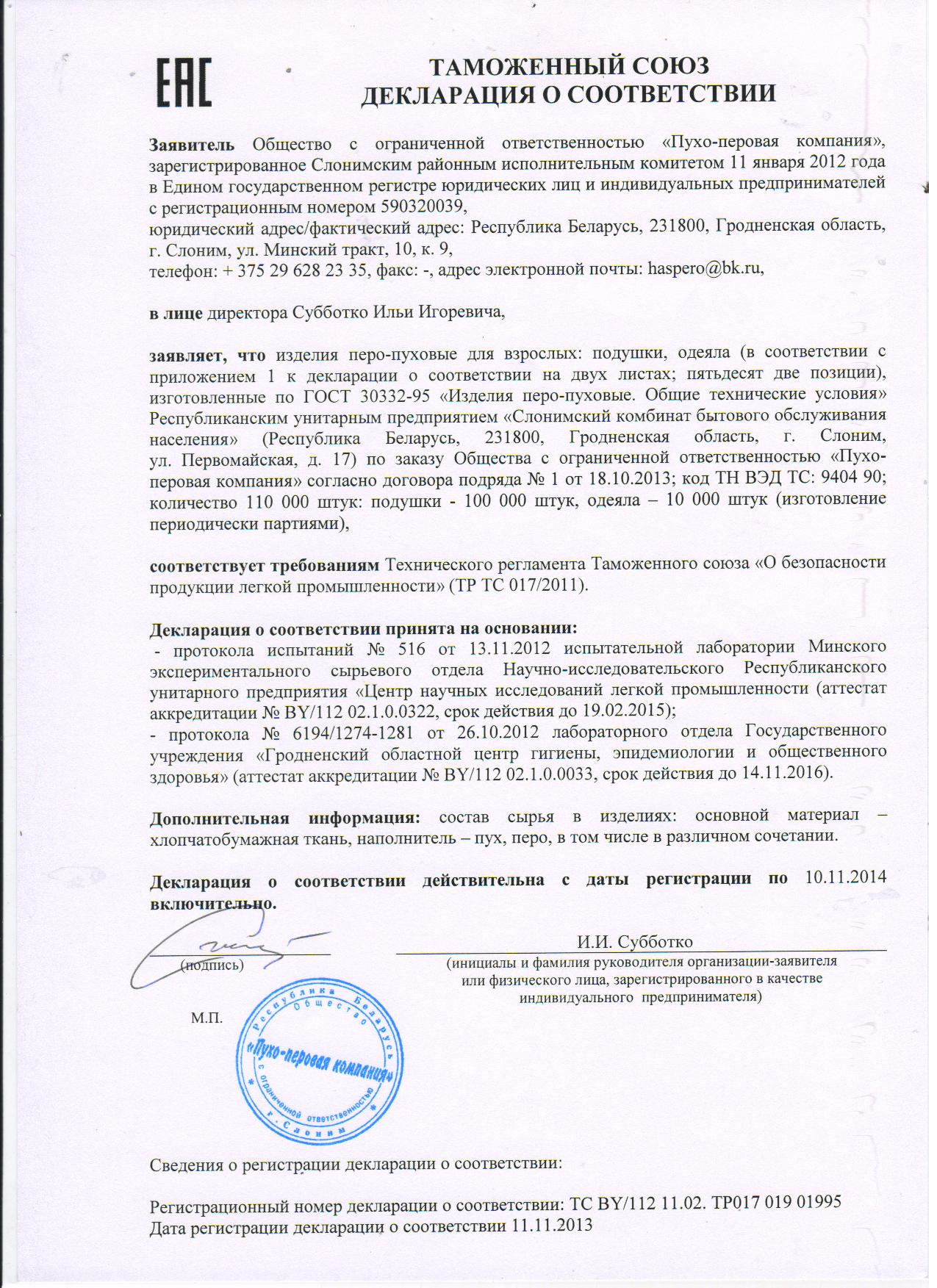 | Battaniye, Yastık, Döşemelik ve perdelik kumaş | Belarus, Слоним, ул. Минский тракт, 10, 9 |