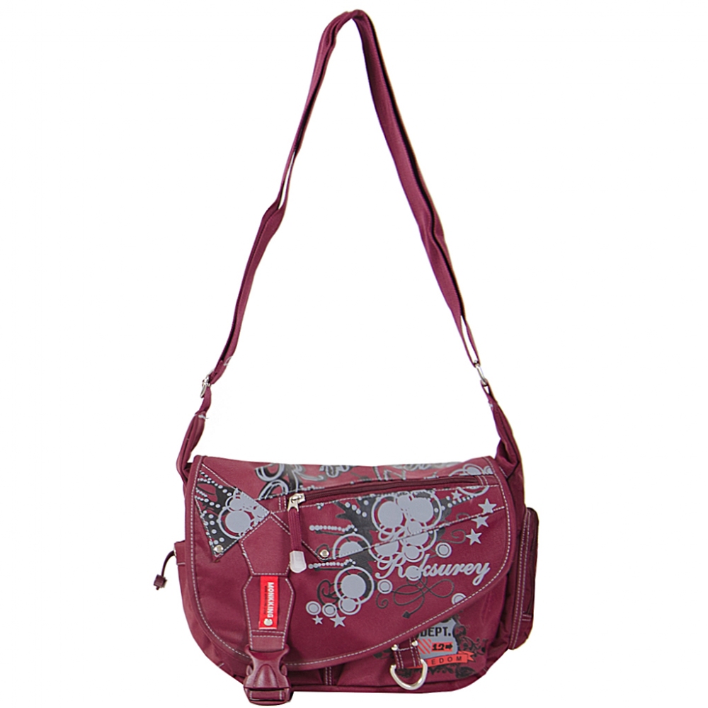 Bag MK-C91502A (gray) Bag made of waterproof fabric, two main sections with zippers, closes with a flap, inside it pockets. On the back of the bag there is one more zippered compartment, two side pockets, two additional pockets in the front. The bag has a fixed, adjustable textile strap. Size: 22 * 25 * 10 External material: textile Internal material: textile Country of origin: China