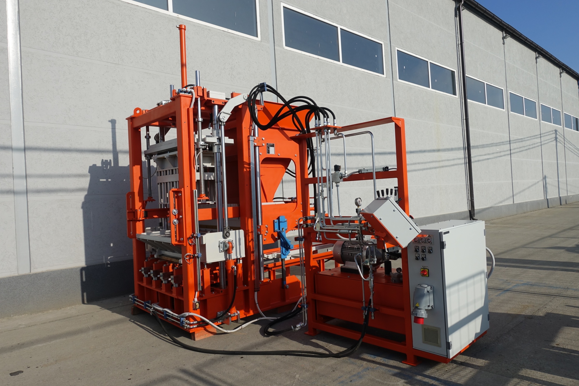 The stationary vibropress SUMAB R-300 effectively produces the following concrete products: hollow blocks, insulating blocks, paving stones, curbs and others. Technical data: Maximum product height: 330mm Minimum product height: 40mm Face Mix Machine Weight: Mold: 2000kg Installed power: 9 kW Main concrete hopper capacity: 600 l Maximum production area: 750x500 mm Production capacity 8h / 100%: Hollow block: 3450 pieces (20x20x40 cm) Paving stones: 270-300 m2 (10x20x6 cm) Scandinavian quality and good prices! Sumab is the foundation of your success!