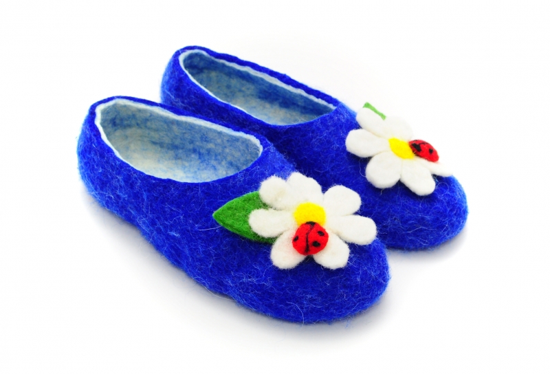 Производитель: РоссияСостав: Войлок из натуральной шерсти. Ручная работа.Цвет товара: классический, синий, красный.Войлочные тапочки «Ромашка».Ромашка, самая родная, самая близкая и самая знакомая с детства. Божья коровка – тоже родная, близкая и знакомая. Теплая домашняя обувь, перенесенная в городскую квартиру из деревенских просторов, как согреет холодными вечерами, так и принесет новые нотки в Ваш интерьер – больше от нее ничего не требуется, хотя Вы сами прекрасно знаете, что у натуральной шерсти много полезных свойств. Говорить об этих свойствах было бы явно лишним.Как и у любой другой пары обуви, которую Вы можете видеть в нашем магазине, у этой тоже может появиться замечательная подруга, которая сможет помочь сохранить тапочки на более долгое время – это подошва. Подошва выполняется так же исключительно из натуральной шерсти – мы не враги своему здоровью, а Вашему тем более, и может быть окрашена в любой цвет по Вашему желанию. Имеется вариант с кожаной подошвой. Для выбора цвета тапочек можете взглянуть на палитру. Приятных покупок!