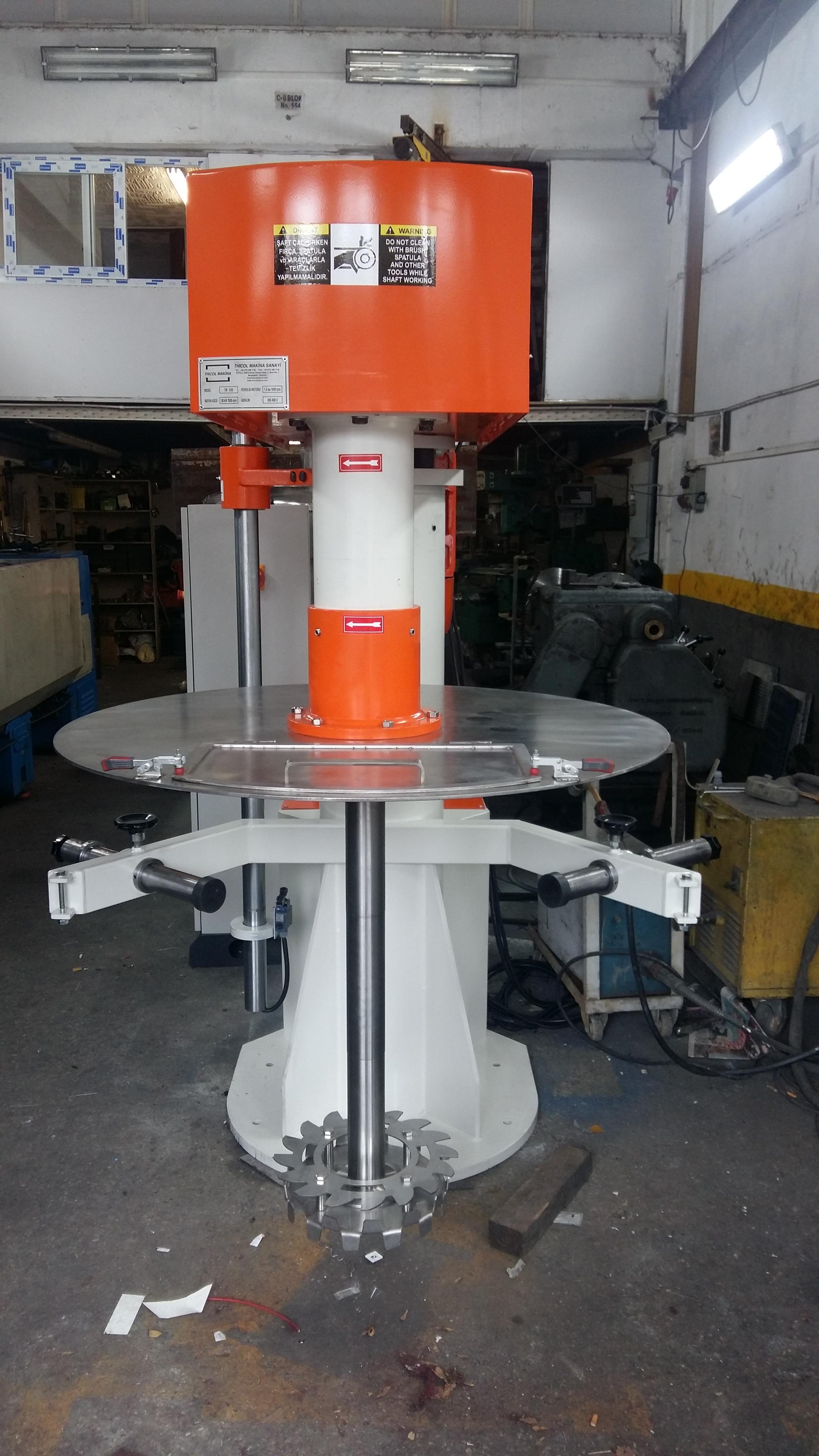 Boya Mikser Makinaları, Geniş bir viskozite aralığında, her türlü karıştırma ve katıların sıvı içerisinde pre–dispersiyon / dispersiyon prosesleri için dizayn edilmiş, yüksek hızlı karıştırıcı / parçalayıcılardır. Kullanım alanları: Genel kimya sanayi Boya ve yan ürünleri Tarım ilaçları İnsektisitler, Herbisitler vb. Bitki koruma ürünleri Kozmetik sanayi Eczacılık ve biyokimya sanayi Gıda sanayi vb.için her tür dispersiyon proseslerinde kullanılabilmektedirler. Boya Mikser Makinaları, Ana milin kalkıp-inme özelliği elektro-hidrolik sistem ile sağlanır. İstenildiği takdirde; makine, kendi gövde ekseni etrafında dönerek birden fazla kazanda çalışabilir. Boya Mikser Makinaları, Ürünün viskozite değerine göre ana mile eklenecek iki veya üç kafayla hizmet verebilmektedir. Ürün ile temas eden tüm parçalar AISI 304 kalite paslanmaz veya özel istek üzerine AISI 316 kalite paslanmaz çeliktir. Opsiyonlar: Kazan sıyırma sistemi Kazan üzeri kapak yerleşimi Vakum sistemi PLC kontrol sistemi Inverter ile devir kontrol seçeneği Reçete kontrol sistemi Malın seviyesine göre mikserin otomatik olarak kalkıp-inme özelliği ATEX Zone 1 için, Eexd-IIB T4-T6 standartlarında komple Ex-Proof makina üretimi.