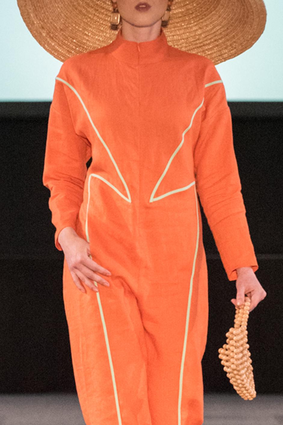 The orange green detailed overall will bring you a mediterranean fresh look. With the harmony of feminine and masculine style, it is time to be unique. The look inspired by from the nature. The zipper is flexible and you can decide the right place till where you want to open or close. The pockets can be used actively also. Overall made by sustainable naturel fabrics to keep your skin breath all summer.