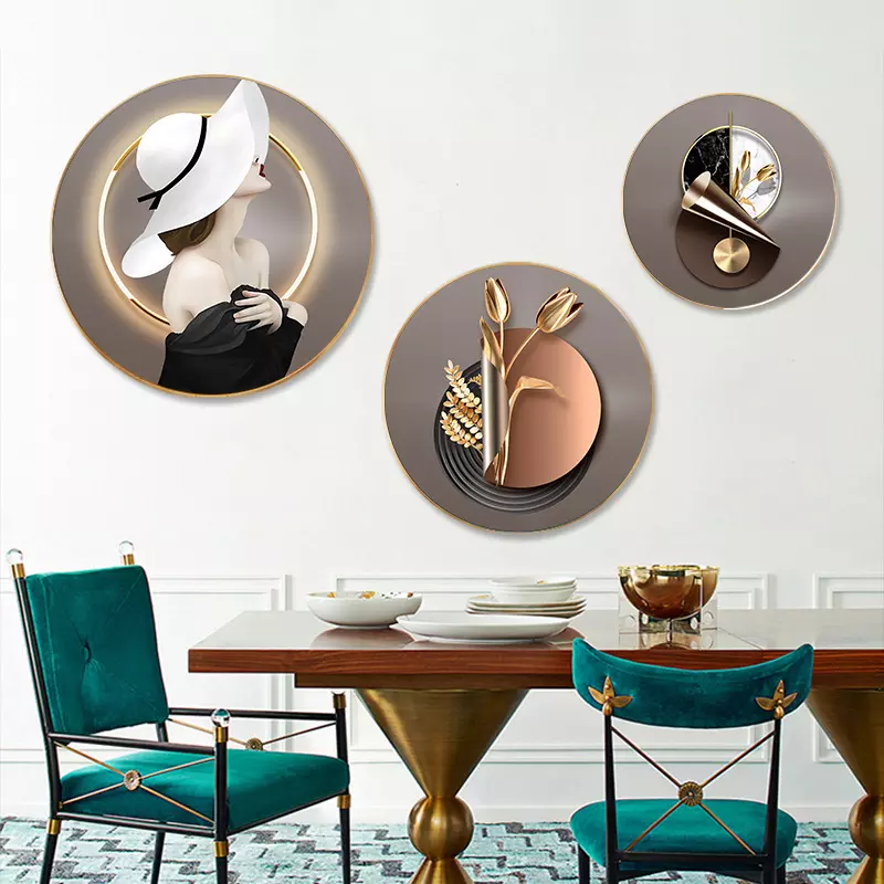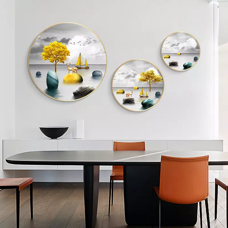 Lüks Ev Dekorasyonu Baskılar Ev Modern Tablolar 3 Parça Dekoratif Asya Tarzı Yuvarlak Duvar Sanatı Çerçeveli - 89282